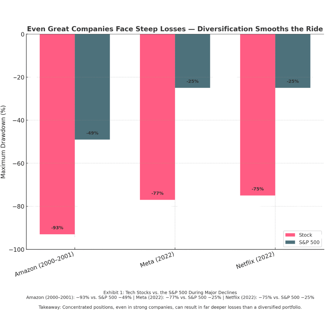 Even Great Companies Face Steep Losses — Diversification Smooths the Ride